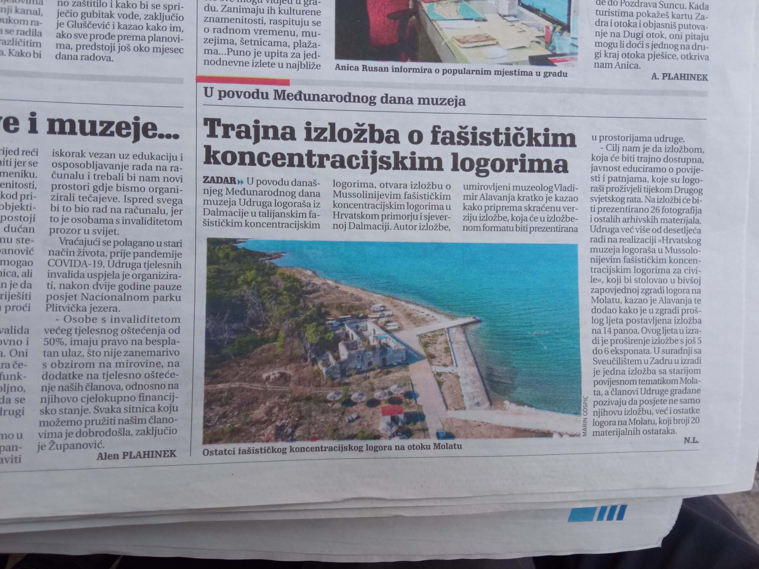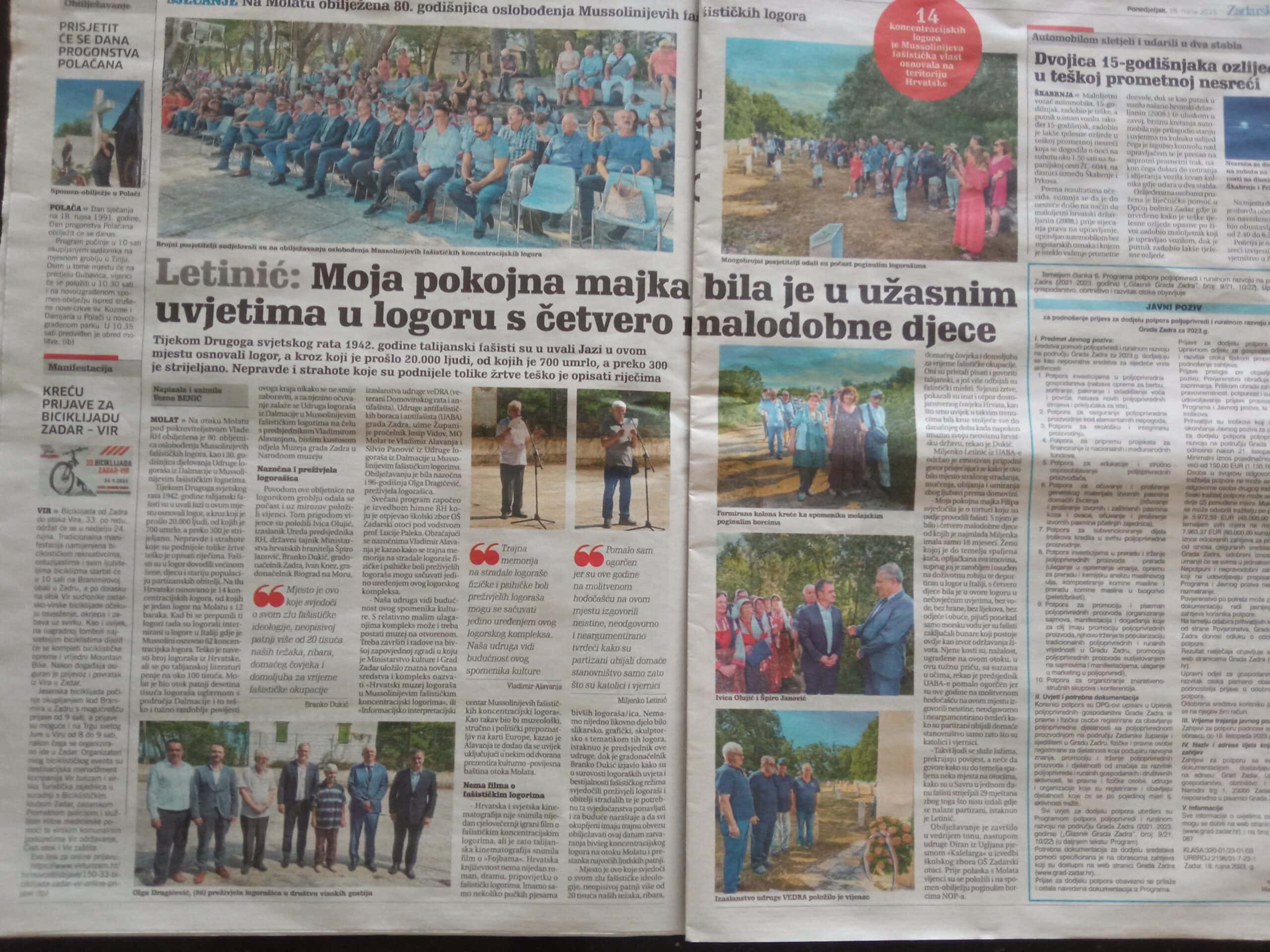 – Udruga logoraša posebno je osjetljiva na civilne stradalnike ratova, pa tako i Domovinskog obrambenog rata jer su logoraši bili civilne žrtve Mussolinijevog fašističkog režima, mnogi su tu skončali svoj logoraški život. To se vidi među ostalom na logorskom groblju u Molatu na brdašcu Hrca. Svi smo u mislima i djelovanjem da se više ne događaju ratne strahote, navode u Udruzi logoraša.