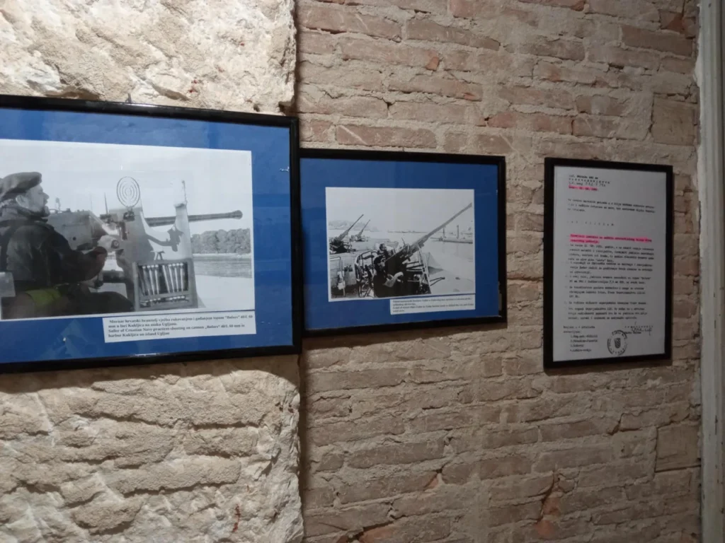 Da bi mlađa generacija i gosti razumjeli silinu napada neprijatelja na Zadar izložena je i jedna fotografija neprijateljskog granatiranja Zadar. Izložena su i dva arhivska dokumenta o osnivanju postrojbe, shema ratne borbene akcije na otočiću Škarda na brodove Jugoslavenske ratne mornarice od kojih je jedan oštećen, onesposobljen za daljnju plovidbu pristiglim novim brodovima Jugoslavenske ratne mornarice tegljena prema Lošinju. Od te akcije neprijateljska ratna mornarica nije ulazila među otoke Zadarskog arhipelaga.